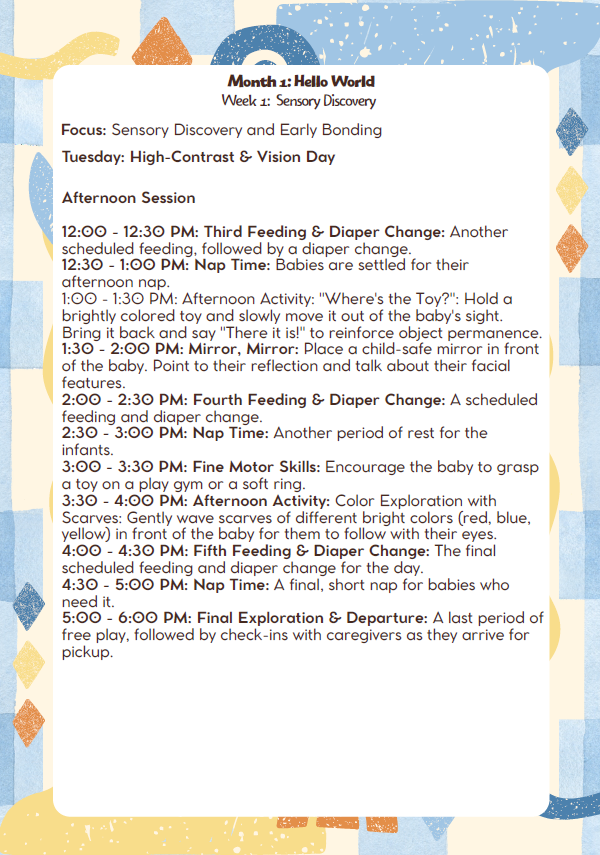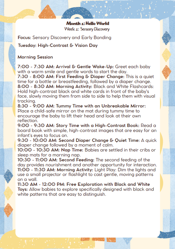- 🧸 Sensory Play – Tummy time, textures, and peek-a-boo games.