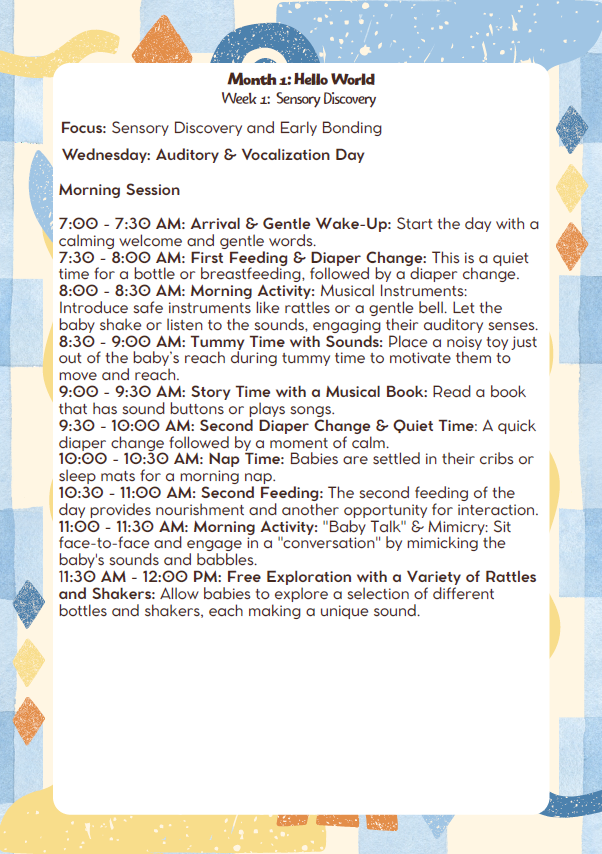 - 🎶 Music & Movement – Gentle songs, clapping games, and lullabies.