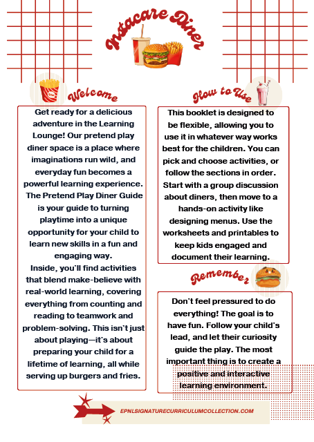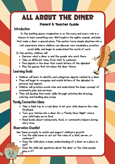 - Includes: Full printable Diner role play kit with decor, forms, and activities