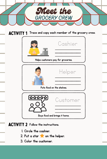 - ποΈ Role Play Jobs β Cashier, bagger, stocker, shopper, and manager roles with scenario cards.