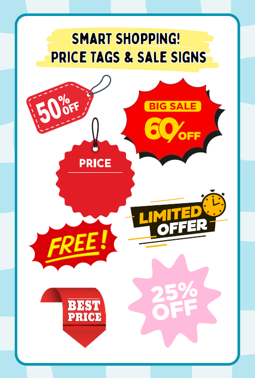 - ๐ณ Money Tools โ Explore cash registers, piggy bank posters, and budget boards labeled Spend, Save, Share, Donate.